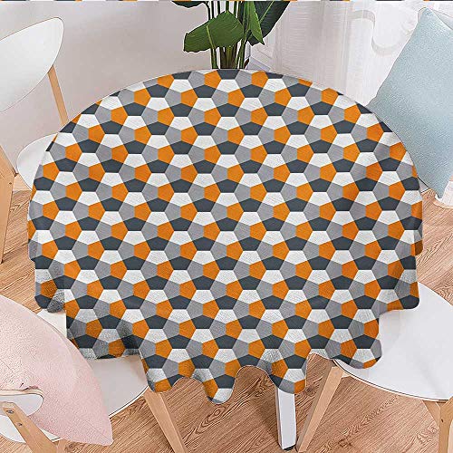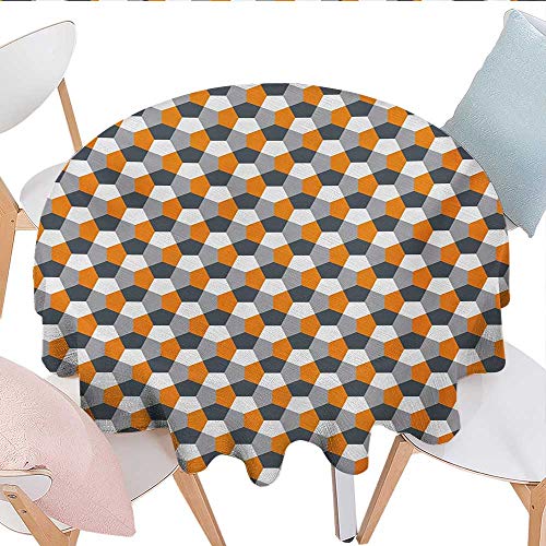 * Round tablecloth Size: Diameter 54 inch (138cm), Tablecloth Material: Damask Polyester ** Round tablecloth Pattern description: Abstract,Modern Style Origami Inspired Mosaic Tile with Hexagonal Shapes,Grey Charcoal Grey Orange *