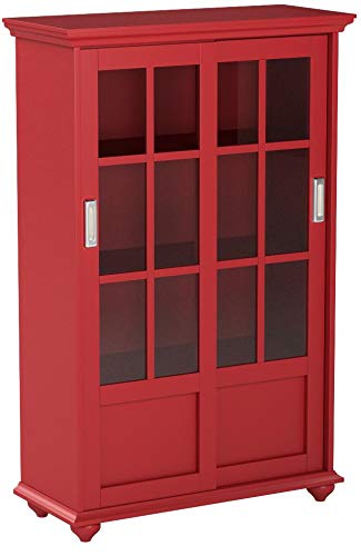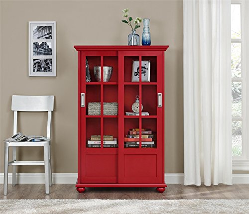 Keep your favorite books and keepsakes proudly displayed on this sophisticated sliding glass door bookcase. The Altra bookcase features two sliding glass doors, allowing easy access to your prized hardcovers, decorative items, picture frames and other keepsakes. You can even use it to store china or glassware in the dining room – or office supplies in your home office. With four shelves inside, there's plenty of room for items, large and small. The bookcase's sliding glass doors allow for quick access to either side, plus the doors help to protect your belongings from dust. Finished in red with solid wood feet, this versatile bookcase coordinates easily with almost any décor, from traditional to ultra modern. Measures 48.03"h X 30"w x 12.99"d.2 sliding glass doors display keepsakes while keeping them protected from dust