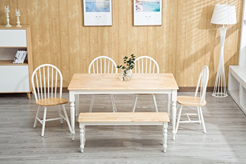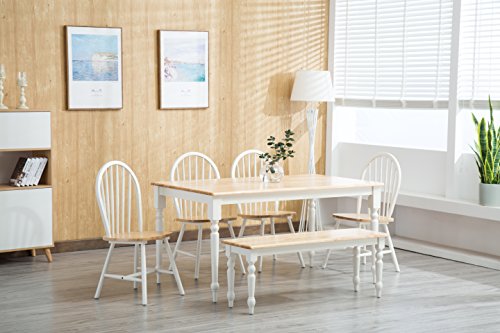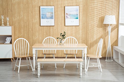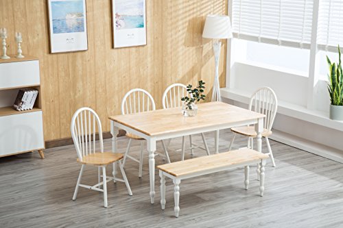 The 6-Piece Farmhouse Dining Room Set in 1 Table and 1 Bench with 4 Chairs in White and Natural from Boraam Industries features... Ready To Assemble construction (RTA): all tools are included making assembly easy as 1, 2, 3.. Constructed with solid hardwood. 36" x 60" Table top . Turned table legs gives a classic look and added stability.. Boraam Industries was established in 2001 and is renowned for quality furniture in a classic, casual style. Boraam provides well-styled, high-quality home furnishings and furniture at affordable prices. Their highly qualified team comes with many years of experience in the furniture industry and the result is elegant classical and contemporary designs at a very reasonable price. From bar stools to pub tables, baker's racks to dinette sets and much, much more-Boraam Industries will have what you're looking for. Recommended for residential use only.Ready To Assemble construction (RTA): all tools are included making assembly easy as 1, 2, 3!