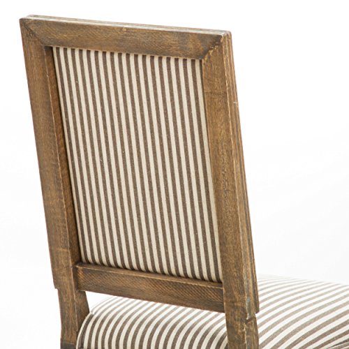 The Madison weathered oak dining chairs are a perfect addition to any room in your home. These chairs not only embellish any dining set, but it also double as stand alone pieces for any parlor or living room. The bold fabric paired with the weathered oak creates blending of style that adds an exciting touch to your interior space."Includes: two (2) dining chairs materials: fabric (90% polyester 10% linen) and rubberwood upholstery color: Dark Coffee Stripe no assembly required; Arrives ready to use L 20 x W 22 x H 40 Seat dimensions: D 20 x W 16.5 x H 19 weight: 13.5 lbs. each"