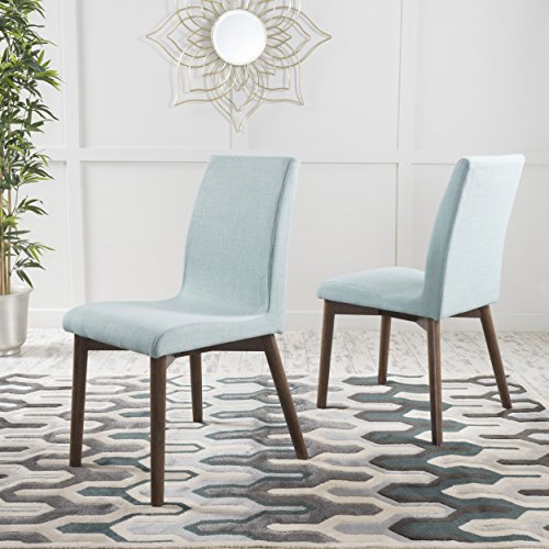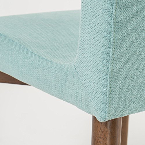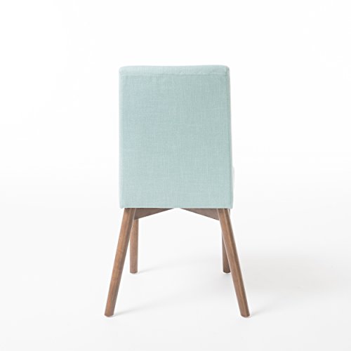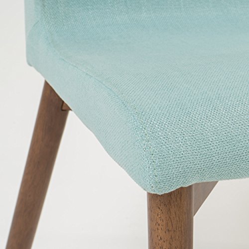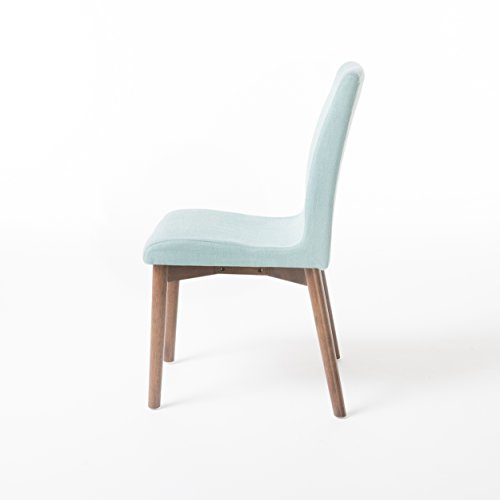 Enjoy these fabric dining chairs in your dining room. With a gorgeous finish on the legs, these dining chairs are sure to please. Not only will you be dining in comfort, but you don’t have the added bulk of many large dining chairs, allowing you to dine in style!"Includes: two (2) dining chairs material: fabric Leg material: solid rubberwood color: Mint Leg Finish: natural walnut some assembly required dimensions: 22.05 inches deep x 20.67 inches wide x 35.83 inches high Seat Depth: 16.00 inches Seat width: 17.30 inches Seat Height: 18.25 inches"