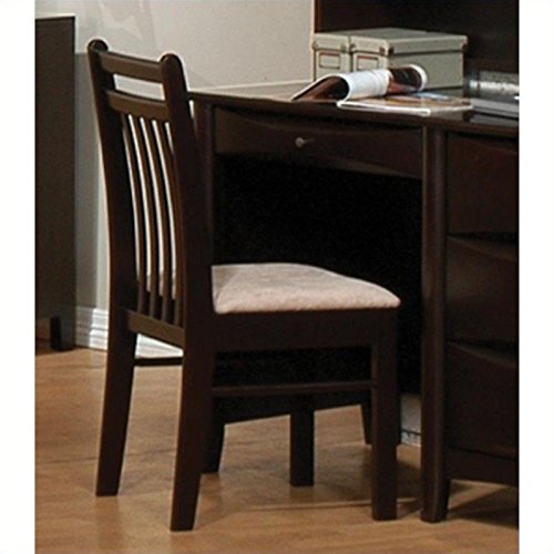 Complete your home office with this casual, comfortable chair. With its plush, padded cushion, it's a cozy seating option for any living space. Its supportive seat back is brought to life by a pleasing, slatted wood design. An elegant cappuccino finish adds style and depth to its sleek silhouette. Perfectly paired with a matching writing desk and hutch, it brings a room together with glamour and grace.Set includes: One (1) chair