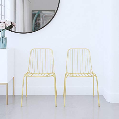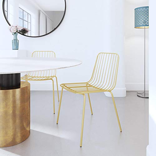 The Cambria Wire Dining Chair Cushion can fit with any aesthetic! Built with a strong wire metal frame, the Cambria can give an industrial flair to any dining room style. All you need is a couple of cushions and the chair will blend into your décor. Cushions not included. Comes in a set of two. Available in multiple finishes.Modern and industrial design perfect for any home décor.