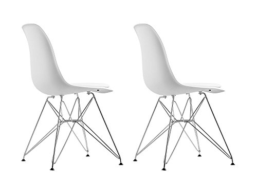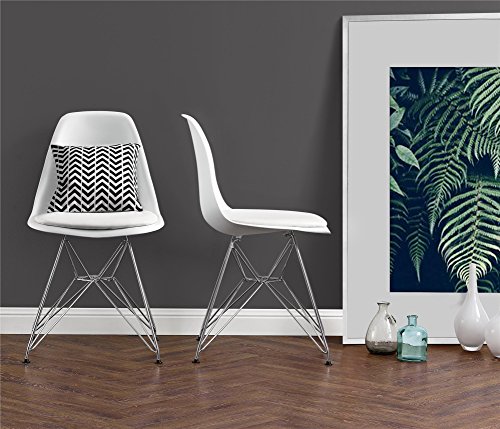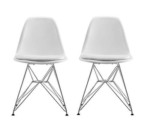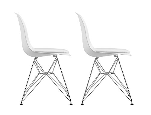 The Mid Century Modern Molded Chair with Upholstered Seat is stylish, comfortable and lightweight. Its minimalist design is the perfect accent chair for all types of home decor making it a must have piece! Sold in sets of 2, this collection is available in black and white offering many practical features that enhance comfort and durability.Mid-century modern iconic design. Set includes 2 chairs.