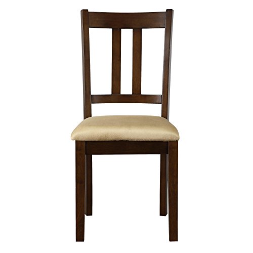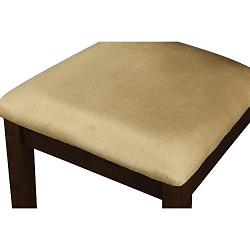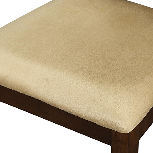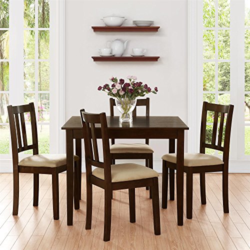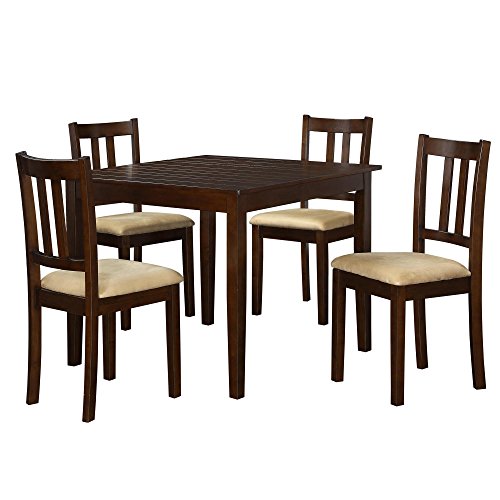 The Dorel Living Redmond 5-Piece Traditional Height Dining Set will effortlessly add a touch of warmth and elegance to your dining room or kitchen setting. This set features beautiful details such as the table top's wood panel look, tapered legs and wood grain finish. The chairs are made of solid wood and are finished in the same espresso tones as the table. The chair upholstery is an easy care and durable beige microfiber fabric that complements the entire set. Enjoy gatherings and family dinners around the Dorel Living Redmond Traditional Height Dining Set for years to come.5 Piece traditional height dining set