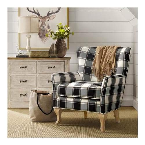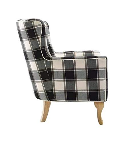 With distinct country vibes and a roomy, comfortable seat, the Dorel Living middlebury checkered pattern accent chair delivers a hint of modern flair mixed with casual, laid-back appeal. A gently curved back creates a graceful silhouette, highlighting the wingback design and drawing visual interest to the room. Generously padded seat cushions ensure lasting comfort and supportive seating as well as making cleaning both simple and easy. The beautiful black and white large checkered print pattern upholstery features a herringbone design, showcasing its curvaceous profile and elegantly complemented by the slightly flared, ash-finished solid wood legs. The Dorel Living middlebury checkered pattern accent chair is a unique piece that will compliment any room’s decor with easy-going charm and cottage-chic appeal.Traditional designed accent chair with modern flair and country-chic appeal