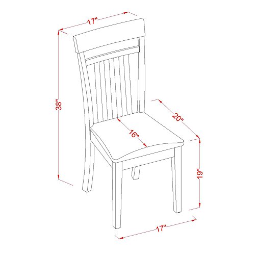 Kitchen dinette chair constructed of all hardwood. Dining chair come with faux leather seat. Finished MAHOGANY. Casual dining room dinette kitchen Chair. Dinette Chair with vertical slatted back. Offers your kitchen modern sophistication with a classy and smart aesthetic design. Dining chair have a refined, modern appearance. Manufactured from quality Asian solid wood. Assembly Required. Include: Set of 2 Capri slat back Chair for dining room with Leather Upholstered Seat.Capri slat back Chair for dining room with Leather Upholstered Seat