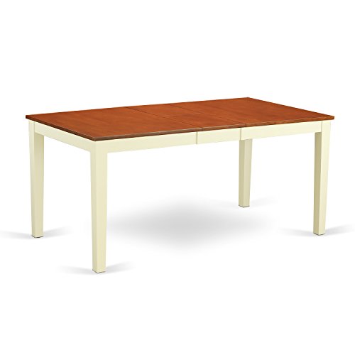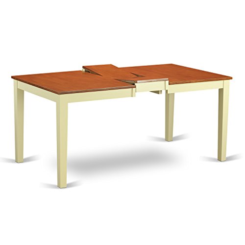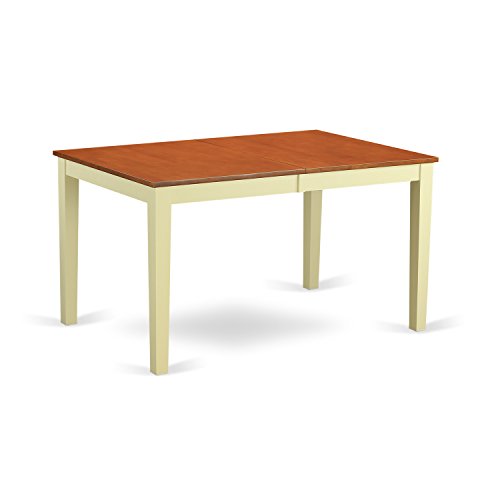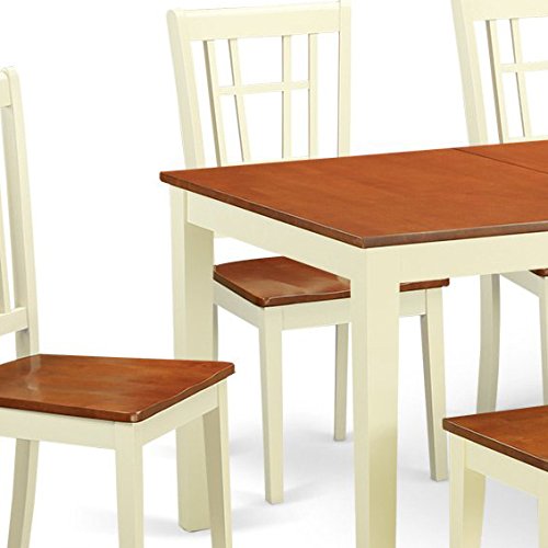 Rectangular kitchen table provides an impression of high end and traditional styling with a contemporary flair. Each and every one of our dinette sets are manufactured from real Asian wood for durability and superb stability. This set is completed in a beautiful two toned Buttermilk & Cherry color. Durable dinette chairs are specially designed with a very simple geometric back which adds an element of style to any dining area. Small dining table features an easy to use butterfly leaf for added space and superior convenience. Included: This 6-piece rectangular dining room table set includes 1 dinette table, 4 wood seat dining chairs and one wood seat bench finished in Buttermilk & Cherry.This 6-piece rectangular dining room table set Includes dinette table & 4 Cushioned seat dining chairs and one bench finished in Buttermilk & Cherry