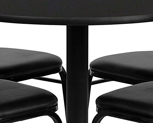 No need to buy in pieces, this complete Banquet Table and Chair set will save you time! This set includes an elegant Black Laminate Table Top, X-Base and 4 Black Banquet Chairs that have a 500 lb. capacity rating to accommodate all users. Use this setup for Banquet Halls, Wedding Ceremonies, Hotel Conferences, Restaurants, Break Room/Cafeteria Settings or any other social gathering. This Commercial Grade Table Set will last for years to come with its heavy duty construction.Round Table and Banquet Chair Set