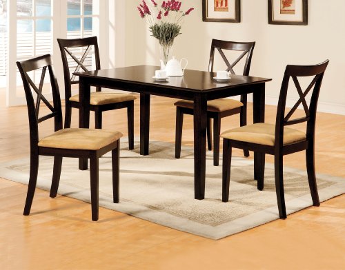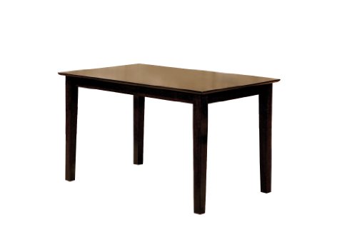 Great for any small kitchen or breakfast nook, this dining table is compact and sleek with its 38-inch sides and espresso finish. Tall legs provide ample room underneath and a square top offers much dining area with space in the center to place any decorative or dining items. If you're looking to save space, you can't go wrong with this dining table and its clean lines. Crafted from solid wood and wood veneers, you are sure to enjoy having this table in your dining space. Chairs sold separately. To clean, simply wipe down with a slightly damp, non-abrasive cotton cloth. Some wood protectants may be used but please use at your own discretion. We highly recommend against using harsh chemicals that may damage the finish. Manufactured in Vietnam, some assembly required. Dimensions: 48"L x 30"W x 30"H.Compact size is perfect for any space-limited home