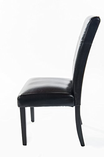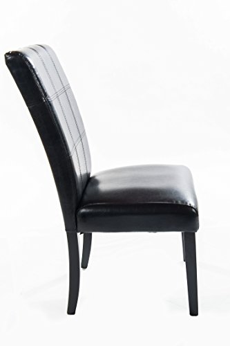 The Home Source Eclipse Upholstered Side Chair is a beautiful example of fine transitional design. Upholstered in a deeply rich midnight black faux leather cover with accent stitching , the Eclipse sits on simplified straight legs in a luxurious ebony finish. The Home Source Eclipse Upholstered Side Chair is a fine transitional dining room seating choice for the most discerning of decorators.This set of two attractive dining chairs will make a stylish addition to any modern decor