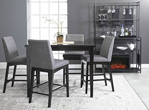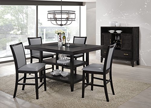 The Home Source Grazia Espresso 5 Piece Counter Height Dining Set is the perfect place for friends and family to gather and enjoy food and laughter. The table also has two lower storage shelves and comfortably seats 4 people. The set of 4 side chairs have a light grey faux leather seat that pop perfectly espresso frame. The Home Source Grazia Espresso 5 Piece Counter Height Dining Set instantly transforms your dining space adding function and style.Classic style with modern lines