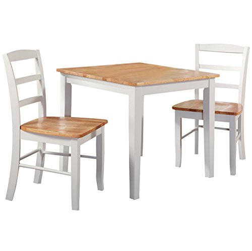 This beautiful three piece set includes one table and a pair of ready to assemble ladder-back chairs. A great addition to spruce up any décor.Solid wood dining table and two chairs