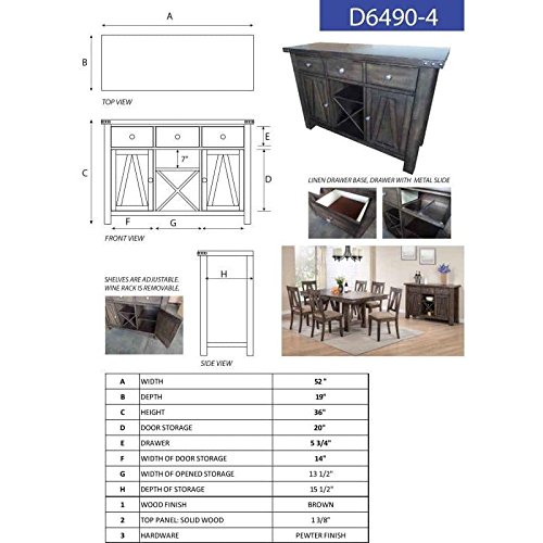 Kings Brand Furniture - Lynn 8 Piece Brown Finish Wood Rectangle Dinette Dining Room Table, 6 Side Chairs & Server Set.Host dinner parties or family gatherings around this roomy 8 piece dining set by Kings Brand Furniture.