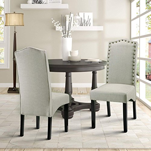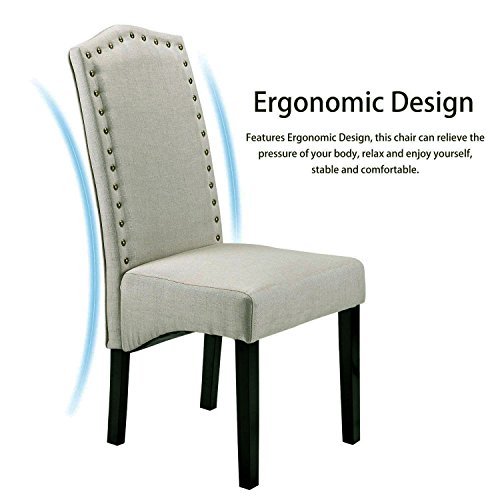 Treat yourself to delightful elegance with the light beige Anastasia Collection. Designed to achieve both comfort and an eye-catching appearance, the Anastasia Collection is formulated to offer quality from the ground up. The gently arched cushioned high back is accented by the crown peak for superior comfort and style as it cascades down into the ultra-soft seat cushion, equipped with high density double padded foam for your comfort. Lean back and relax worry free with the cushion consisting of reinforced spring support for a slight rebound effect when sitting creating a seating area that can withstand long periods of consistent usage. Enjoy the velvety soft light cream linen upholstery to add a unique touch of creativity to your home that is sure to impress guests. Supported by a high-grade hardwood frame, lean back and relax into the quality support, with the exposed asymmetrical espresso base legs formatted to be wobble-free. The antique gold perimeter nail head trim add the perfect finishing accent to tie the entire chair together for a look of subdued Victorian style.