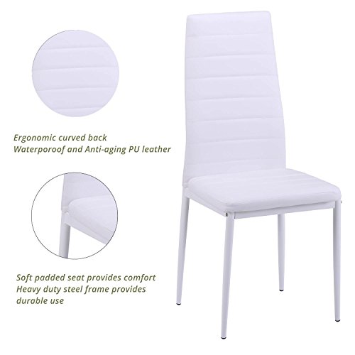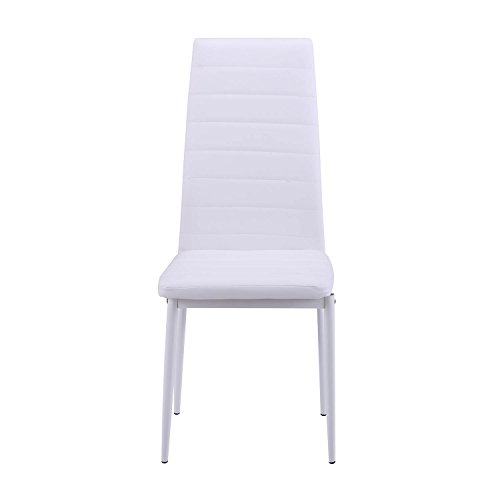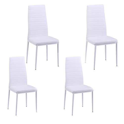 This Merax Luxurious Luxurious Dining Chairs is perfect for living room, dining room or bed room, which will adds upscale appearance for your lovely home. The constructed metal design makes this chair study and durable while ergonomic high back design of the chairs provide great comfort and relaxation when seating in. What's more, you will get four such excellent chairs in one order, saving your cost.