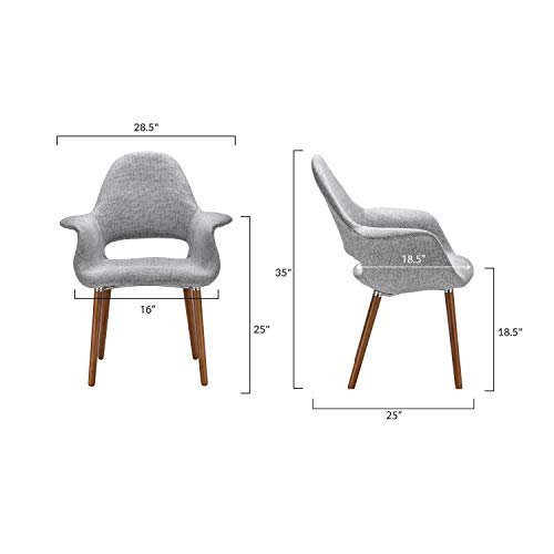 The Organic Chair was designed in 1940 for the New York Museum of Modern Art's "Organic Design in Home Furnishings" competition. Technically advanced, the impressive seat was not put into series production until after 1950, when technology had matured enough to manufacture larger quantities of the organically shaped seat shells. Eero S. designed the sought-after Organic Chair in conjunction with Charles E., combining the creative design vision and talent of two of the most significant designers of the 20th century. Poly & Bark produces the Organic Chair in a hand-formed shell, upholstered with quality twill fabric in various colors. Overall Product Dimensions: 25"L x 28.5"W x 35"H Seat Height: 18.5"L x 16"W x 18.5"H Armrest Dimensions: 6"W x 8"H Backrest Height: 18"H.Armrest height is 24" from the ground . Supportive high back and arms with High Density Foam for comfort