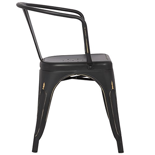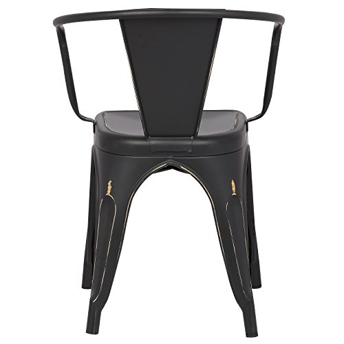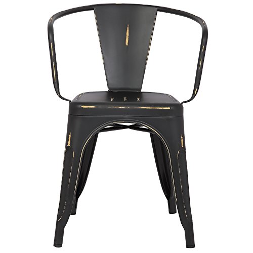 Some things never go out of style, and such is the case with this classic trattoria arm chair. Perfect for everything from a sidewalk Café in the heart of downtown to a casual table in your eat-in kitchen, this chair delivers commercial-grade durability and inviting style. This chair includes non-marking feet caps to protect your flooring and offer stability. The chair is built in electroplated metal for astounding durability. With tapering legs, and a rounded back frame, this chair is easy to stack and store. Overall product Dimensions:19"L x 21.5"W x 28.5"H seat Dimensions: 17.5"H x 14"D x 14"W"Perfect for Cafe's or Bistro's