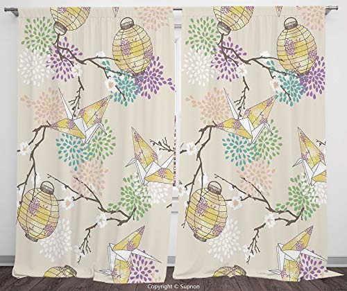GOOD PERFORMANCE: Unlike ordinary sheer drapes, the weave in the fabric is not too sheer, which creates a non-transparent view but definitely lets enough light in during the day.WIDELY TO USE: Such sheer curtain is a perfect choice for those who don't want outers to be able to see in. This style will be suitable for any room as the fabric is versatile to go with any decor.Rod Pocket Curtain Panel Polyester Translucent Curtains for Bedroom Living Room Dorm Kitchen Cafe/2 Curtain Panels/108 x 95 Inch/Lantern,Colorful Origami Cranes Paper Lanterns with Branches and Flowers Culture Decorative,Lilac Pink Beige Yellow