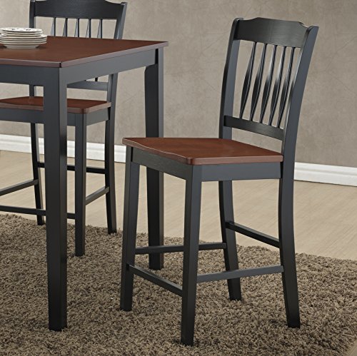 This Anja Two-Tone Cherry and Black Solid Wood 5 Piece Dining Set is a perfect addition to any home. This set includes a table and four stools, each is crafted durably with wood and features a beautiful black finish. 4 stools with straight front and slightly curved back legs offer stability, which are bold and beautiful. Flat seat and comfortable back bring elegance to the superb traditional design.The Anja Two-Tone Cherry and Black Solid Wood 5 Piece Dining Set is as warm and inviting as it is sturdy