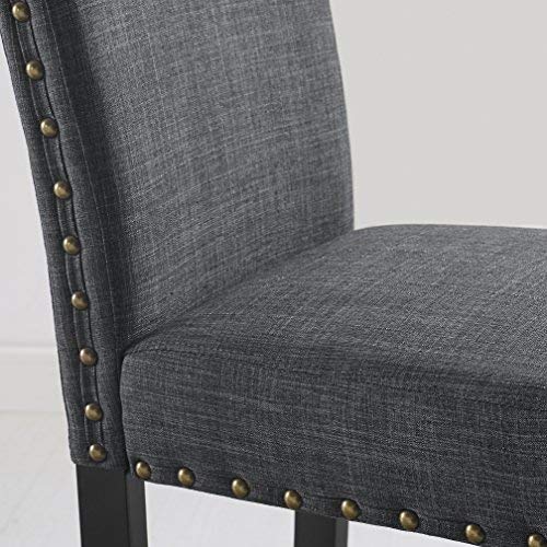 Cozy up for an intimate dinner around the Biony Espresso Round Dining Table. This lovely table has a wooden look table top in a rich toasted coffee bean finish, and has metal legs and framework, including studded trim work around the table’s edge. Extra table layer adding additional storage room and convenience. 4 fabric dining chairs bringing comfort and contemporary. Highlighted with brass nail-heads for on-trend flair. The circular table shape allows for four or six people to be seated comfortably around it, so gather around the gang for happy lunches, bright breakfasts, and cozy dinners for years to come.5 piece dining Set includes one table and 4 chairs, highlighted with brass nail-heads for on-trend flair