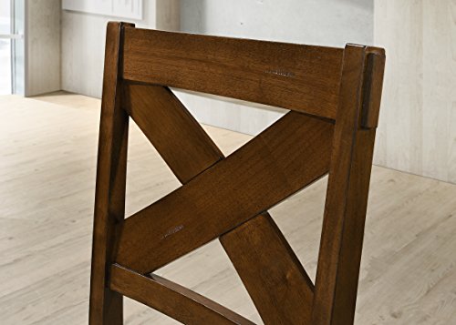 The Karven Acacia Dining Table Set is a great family piece. Set includes 1 expansive table and 6 chairs. Featuring an expansive tabletop which offers seating for many, the table also has a self storing 18" butterfly leaf, making it 90". Finished in a Dark Hazelnut, the table features thick, sturdy legs in an X-design. Hardwood frame adds that extra bit of style and stability.7-piece package includes the table and 6 chairs