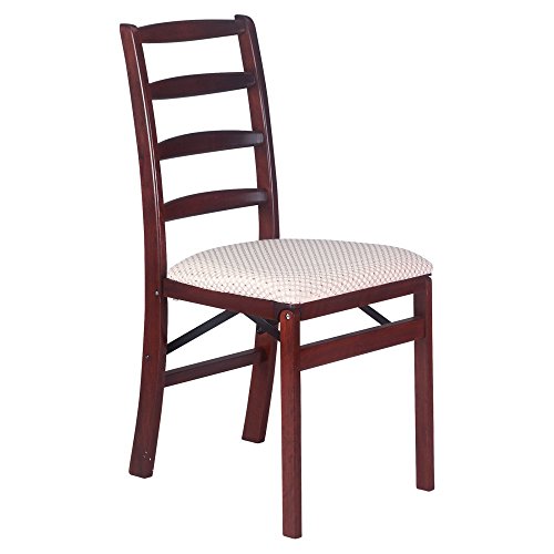 Ships in sets of 2 only Available in Cherry, Fruitwood and Oak finish Premium solid wood construction Steel folding mechanism Blush fabric upholstered seat Folds to 8.25deep for storage No assembly required Seat Height: 19" Overall Dimensions: 35.5" H x 17" W x 8.25 D Closed -20.75D Open Unit Weight: 13.2 Lbs. Weight Capacity: 300 Lbs. Product Warranty: 5 Years This traditional Shaker Ladderback Folding Chair is constructed of solid hardwood with steel folding mechanism and padded upholstered seat and four curved back rails set in a clean shaker line are the perfect addition to any homes extra seating needs.
