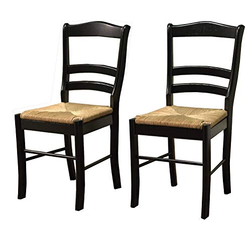The Paloma Dining Chair features solid wood construction with woven rush seating, in a modified ladderback design. Available in black or red color. The chair measures 21-inch by 18-3/4-inch by 35-1/4-inch H. The chairs are packed 2-piece/ctn. Requires some assembly.Contempory style