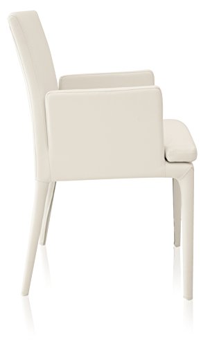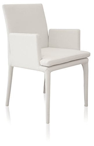 This Arm Chair will give your dining or living room a stylish flair. A wrap around eco-leather in matte easily transitions your home to an updated modern appearance while a padded seat provides comfort while you sit and dine.