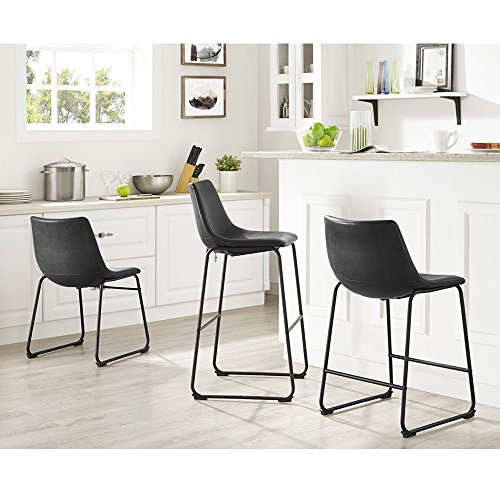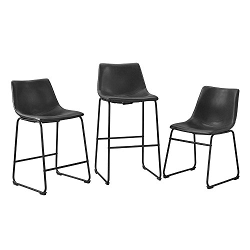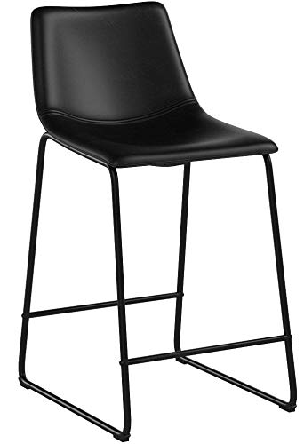 Bring the sophisticated look of leather seating to your kitchen, dining room, or entertainment area. These faux leather chairs are the perfect addition and great for everyday use. The synthetic leather is soft to the touch while its curved seating provides comfort. Supported with powder-coated steel legs for a durable, long lasting design.Synthetic leather upholstery