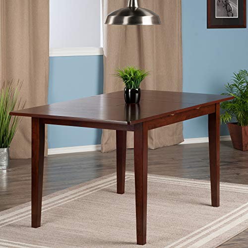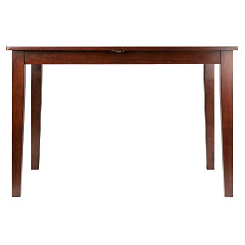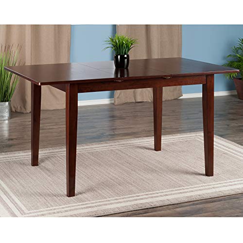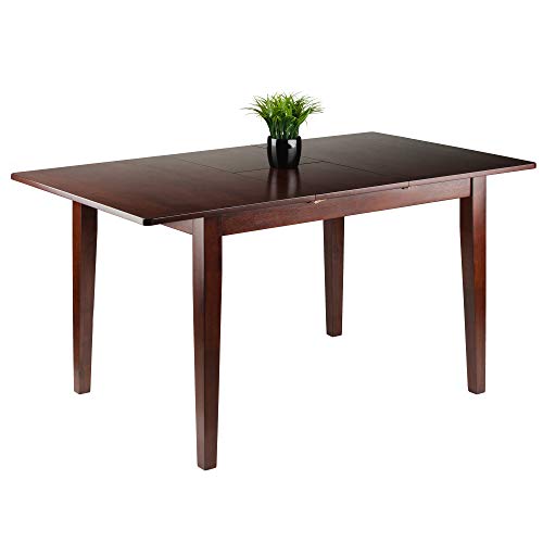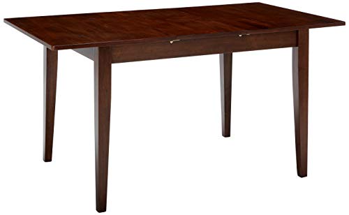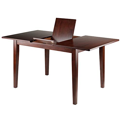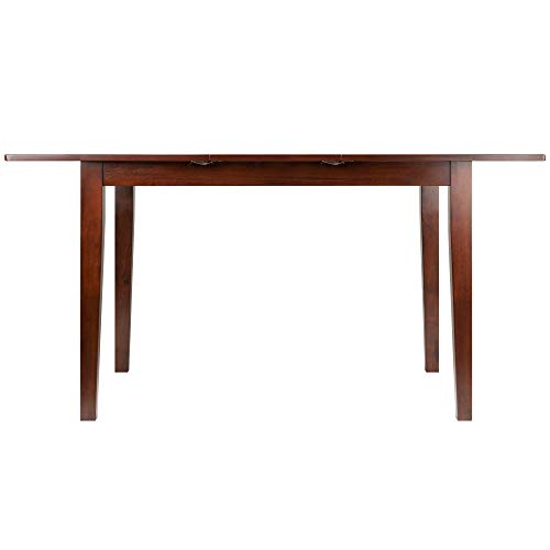 When it's time for a larger gathering, the Anna Extension Top Table is an indispensible addition to your home. Pull the leaves apart and spread out the recessed bi-fold extension to bring your table length to over 58", ample room for seating six. The generous height clearance from floor to side aprons allows for any dining chair. With sturdy, slightly tapered legs, this is an ideal piece for holiday dining or to comfortably seat friends and family in the kitchen. The table is constructed of Solid Wood in a rich Walnut finish. Overall dimensions: 29.2"H x 44"W x 32.4"D (without extension) Overall dimensions: 29.2"H x 58"W x 32.4"D (with extension) Dimension of middle leaf: 14"W x 32.4"D Dimensions of right and left leaves: 22"W x 32.4"D Height clearance from ground to apron: 25.75"H Distance between legs: Table Length: 38.5" - 37" Table Width: 26.9" - 25.3" Assembly required Ships in 1 boxExtension table up to 58" Wide
